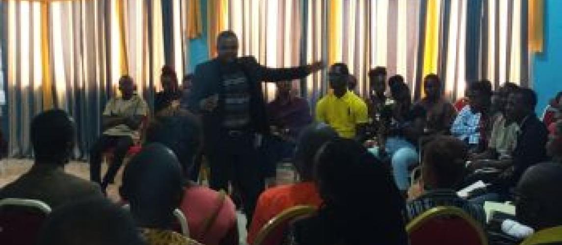 Monrovia, August 27, 2019:To popularize the Local Government Law among young people, the Technical Focal Person, D. Emmanuel Wheinyue on Tuesday, August 27th held an engagement with over 70 young people, mostly from District Youth Councils of 17 electoral districts of Montserrdao County and other young groups.